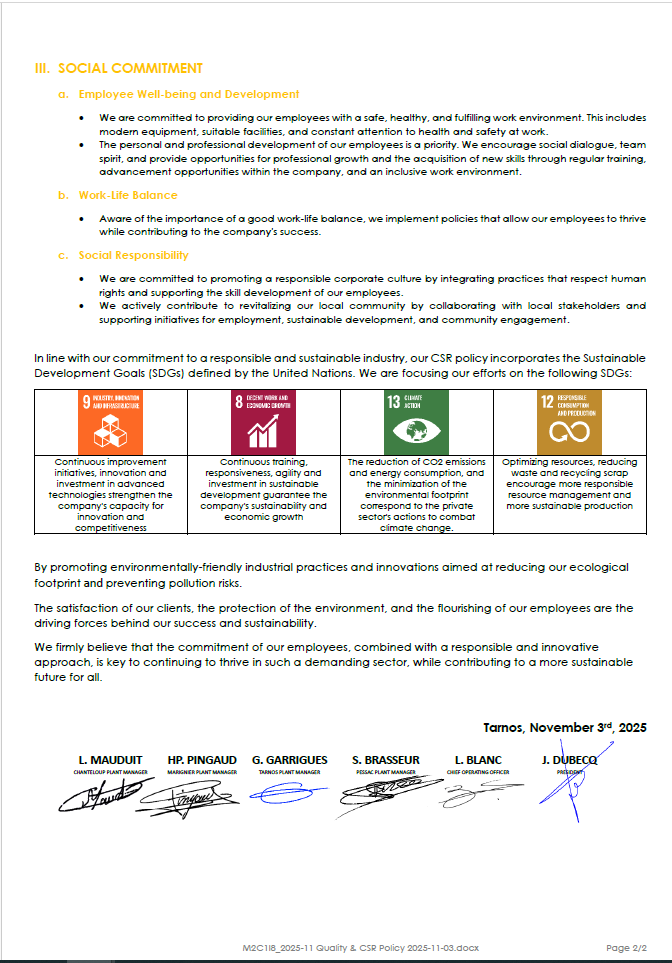 Firmly committed to a sustainable, high-performance industry, this policy is based on three fundamental principles: